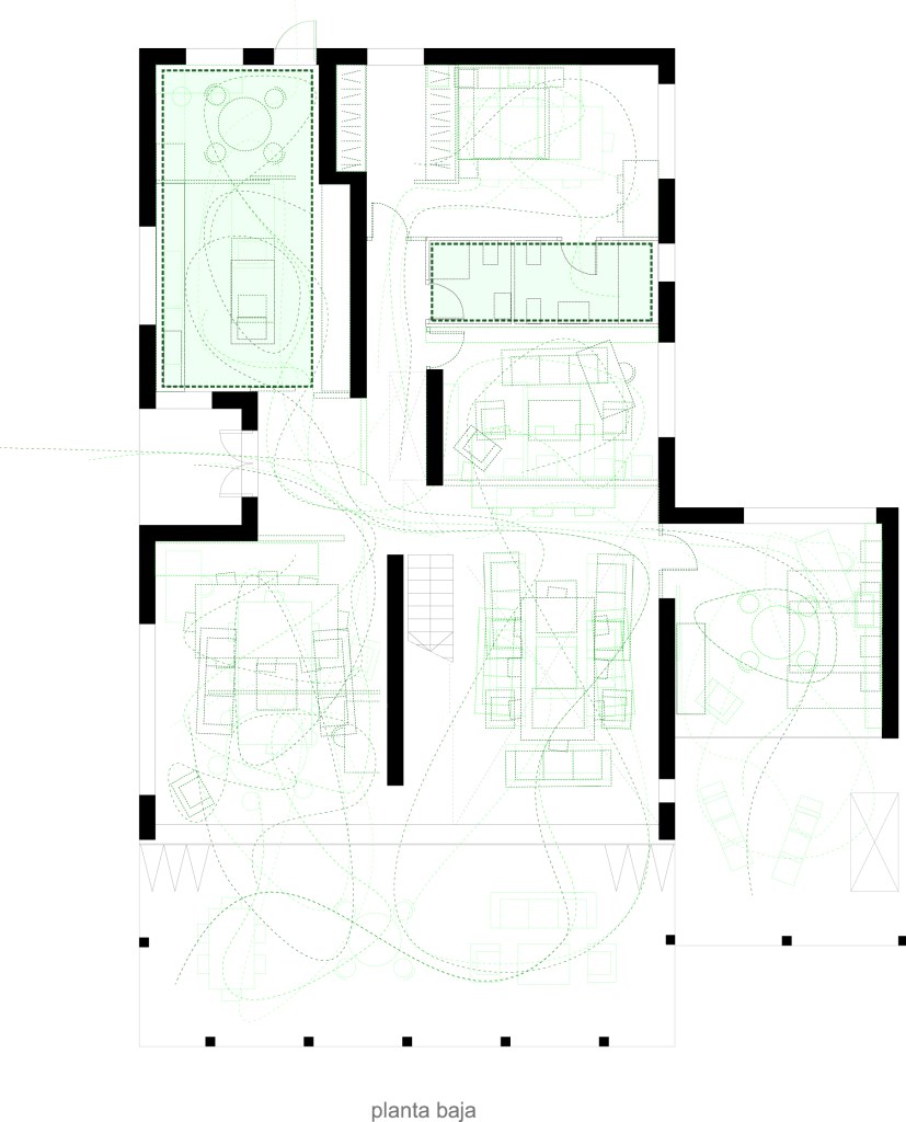 A retired couple of doctors decides to use their life savings to build a new house for them and their visiting sons and grandsons now living abroad. The clients want the house to be thought for now and for generations to come, eventually inheriting the property. In search of flexibility and future change, the design invests in setting a clear spatial system around which adaptation can occur. This system is designed to organize not only service areas and installations but also spatial relations, structure, lighting, and energy performance. In particular, the design deploys a system of brick cavity walls that articulate all relevant house spatial relations, while fluid inhabitation and variability are expected in between them. The walls are made of two interconnected layers of solid fire brick, a leftover from a cancelled local construction, acting both as a structural support for the house and as a 35 cm thick building envelope of highly efficient energetic performance. In the public areas of the house, brick walls, left unclad, as well as the concrete slabs, better absorb energy flows and are slightly shifted. As such, they partially expose while not totally disclosing spaces behind. Displacements, perforations, and sectional connections create a dense web of spatial relations that ground everyday life experiences. Material and light qualities of the house’s core elements are further explored through simulation and models. Finally, a double-height concrete portico highlights the client’s will to be seen.