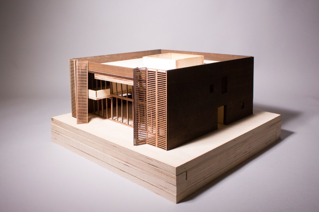 The main volume, which contains most of the program, is the courtyard house. Its strong typological character organizes the domestic functions, with the courtyard serving as the central core. However, this same courtyard—while structurally central—is constantly questioned through the material development of the project. Deep transversal relationships are introduced, such as the connection between opposite façades or between the interior double height and adjacent volumes, softening its dominant character.