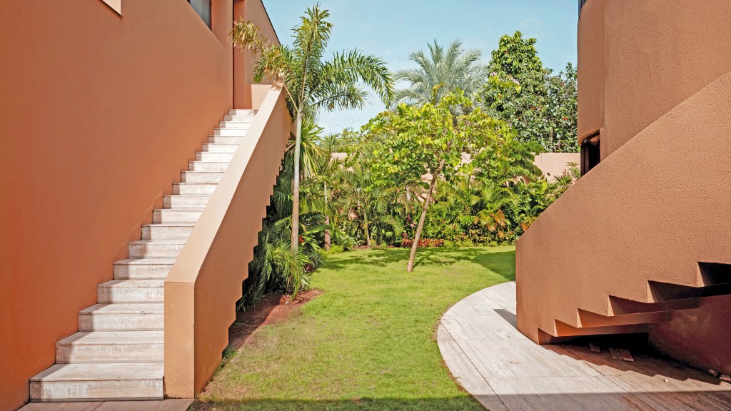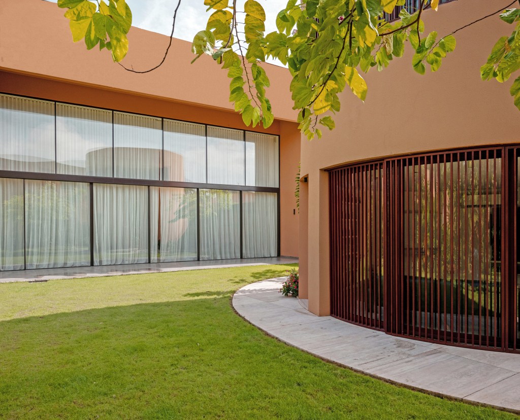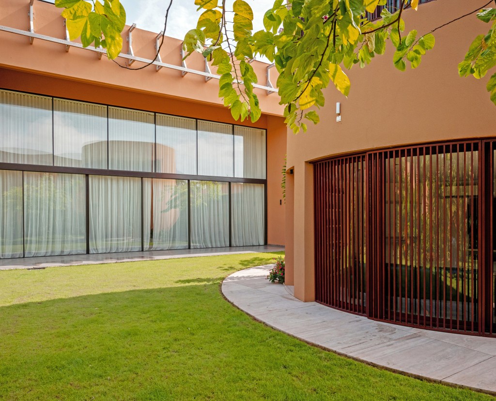 Marcory House is located in a chaotic and disjointed environment, which motivates the dwelling to close itself off from the outside and develop its own internal logic. This introspective organization revolves around three distinct elements within a single enclosed compound. Each corresponds to a clear typology: a courtyard house, an open block resembling a private apartment, and a circular volume dedicated to play and fitness. These volumes are tangentially connected by an entrance canopy, generating interstitial spaces enriched by carefully designed landscaping.