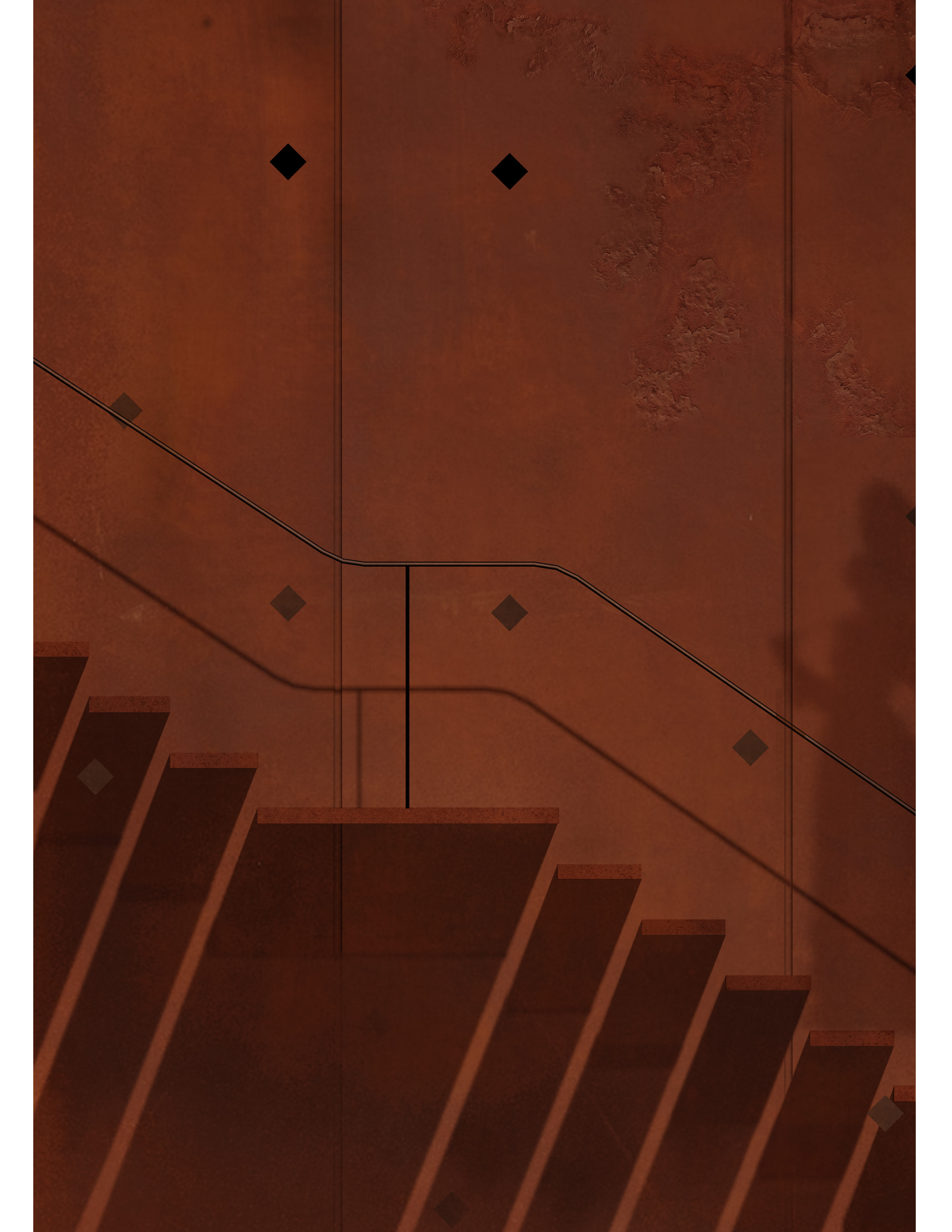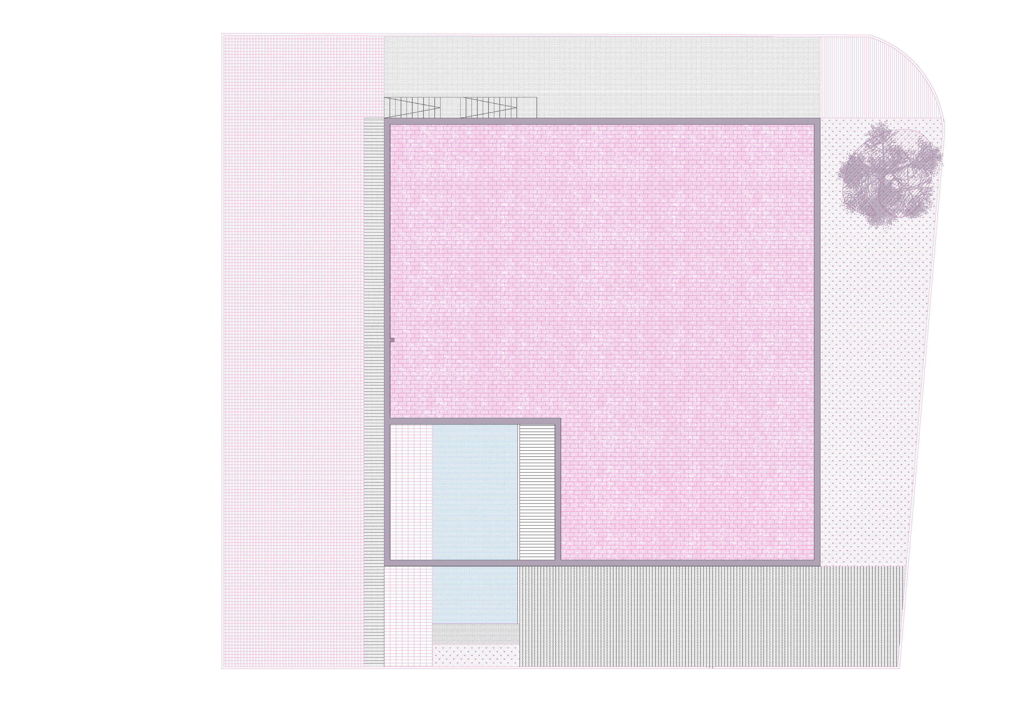 In this obsession with splitting a space of one’s own into this landscape the building appear like a structure that has lost its communicative meaning. The way of entering the house is not obvious, and the building appears as this blank façade made of metal panels, not showing anything, with only a simple staircase conducting to the roof. At the top we can find a space to be use as a terrace, since the lot is not large enough to allow the enjoyment of a large garden.